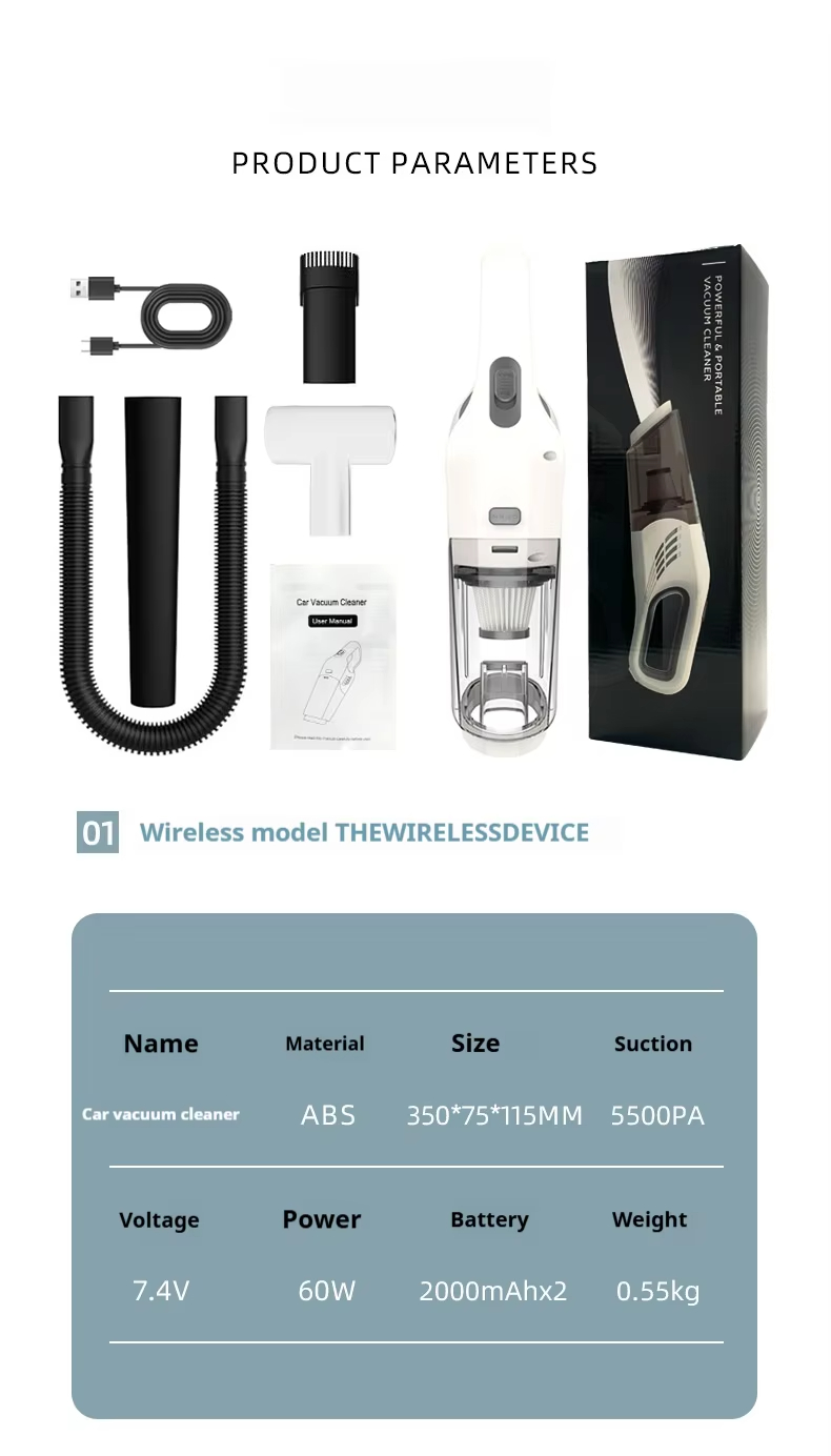 Prev: Car Battery Powered ABS Vacuum Cleaner Wireless Portable High Suction Household Handheld Dust Collector Small Mini Blower