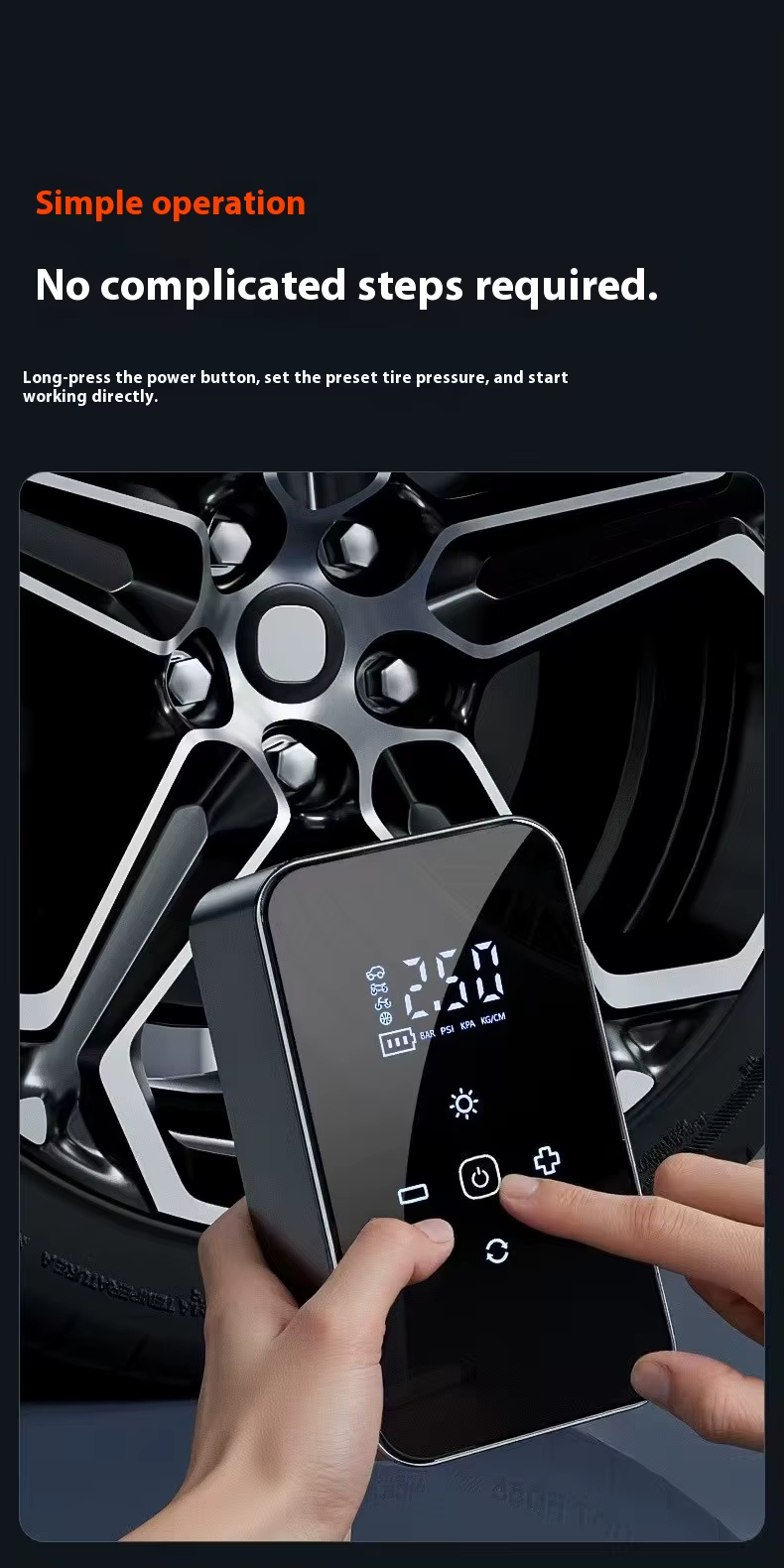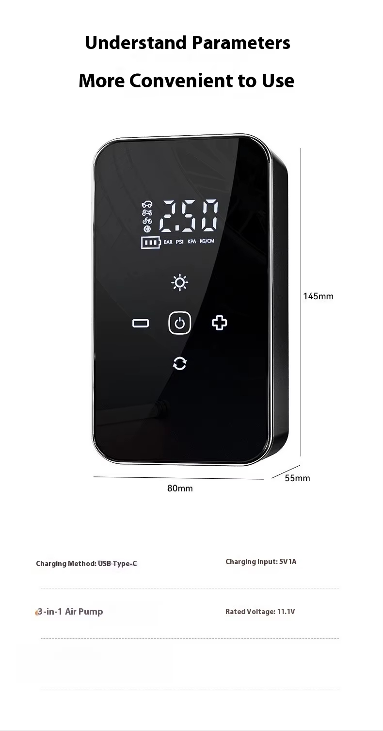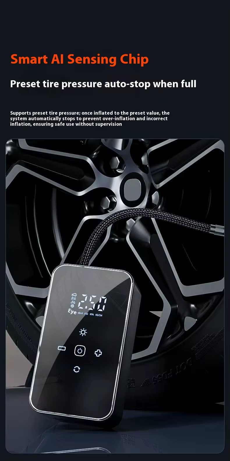Compact Portable Car Air Pump with Digital Display ABS Material Fast-Charge Electric Air Pump