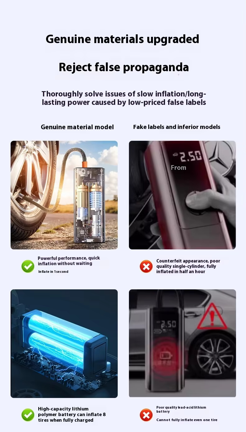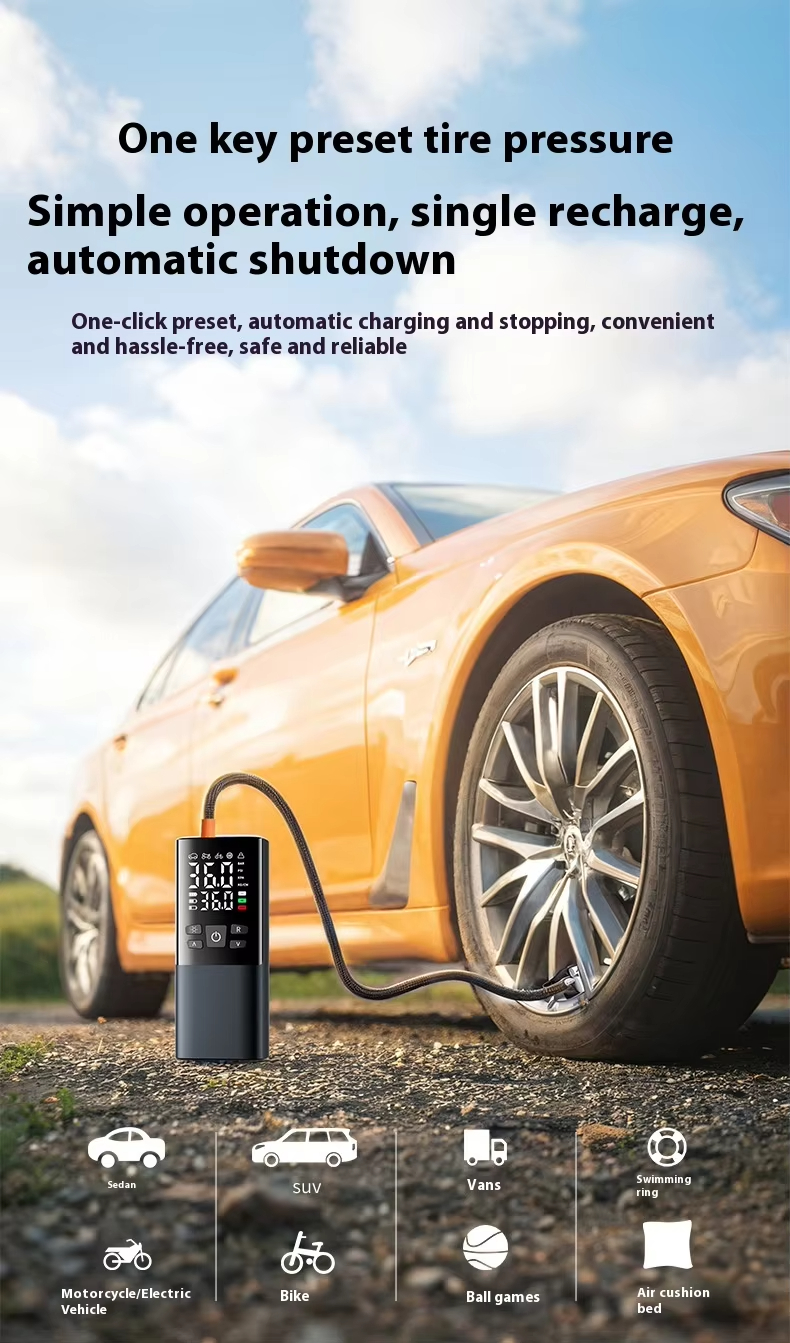 Portable 150 PSI Cordless Car Tyre Air Pump 4500mAh Wireless Rechargeable Tire Inflator for Cars Bicycles Tire Pressure Monitor