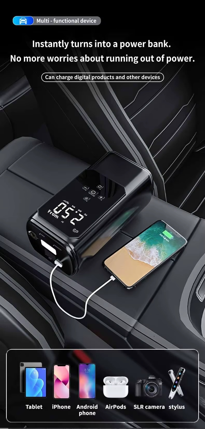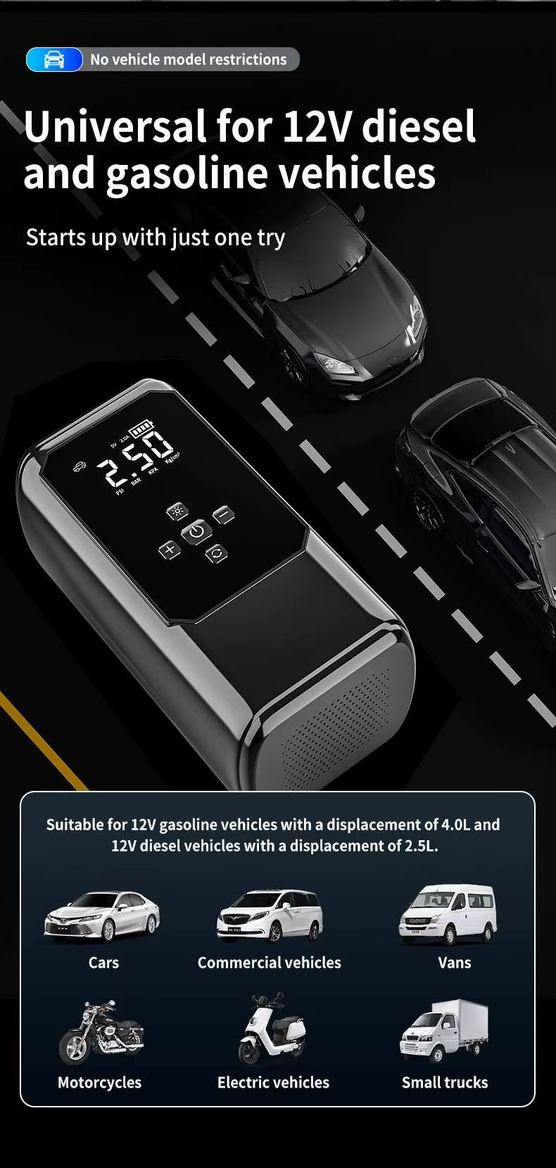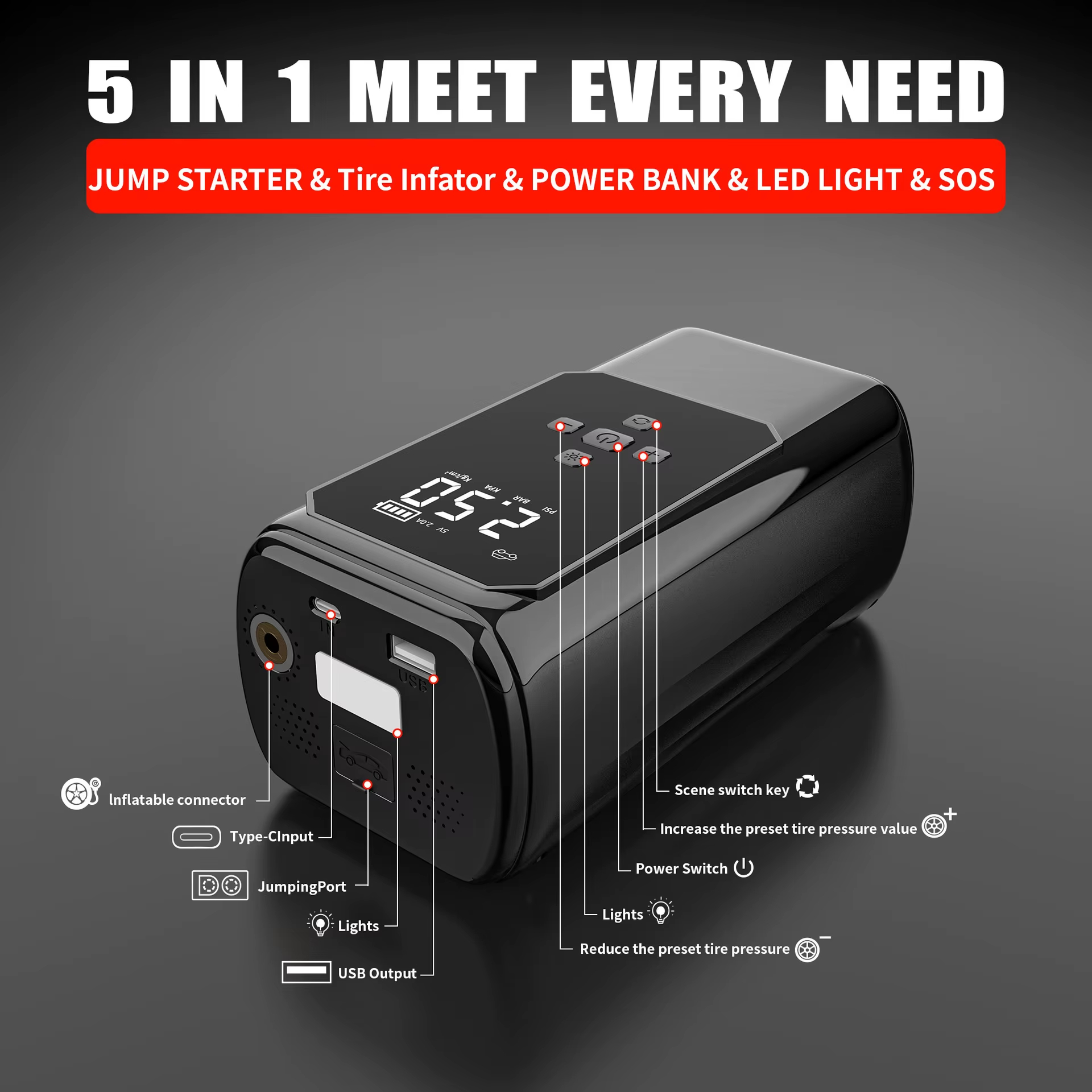2025 Model High-Capacity 12V ABS Battery Jumper Pack New Car Emergency Jump Starter with Built-in Air Compressor