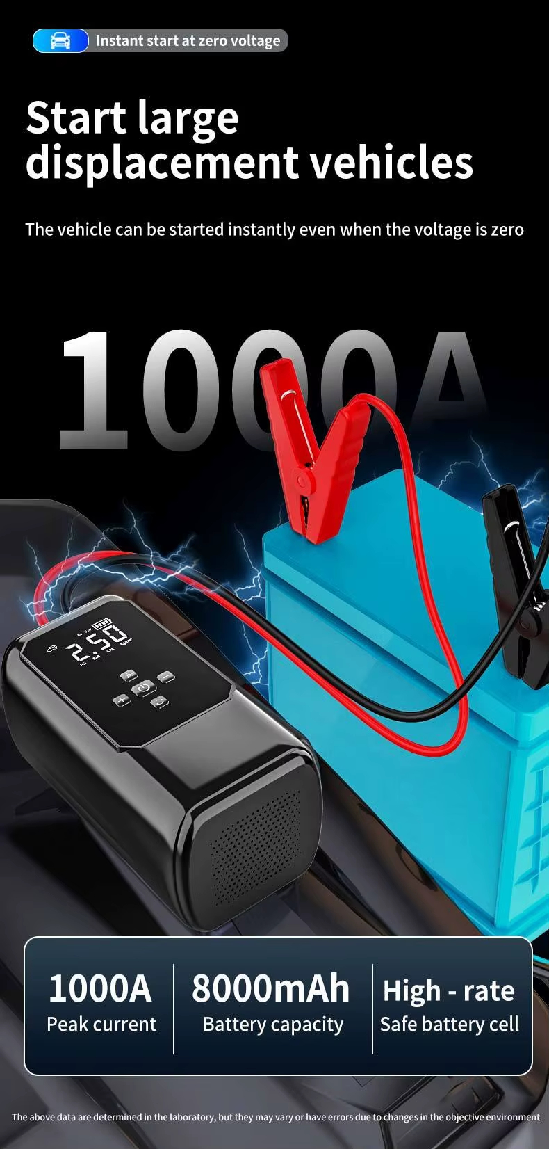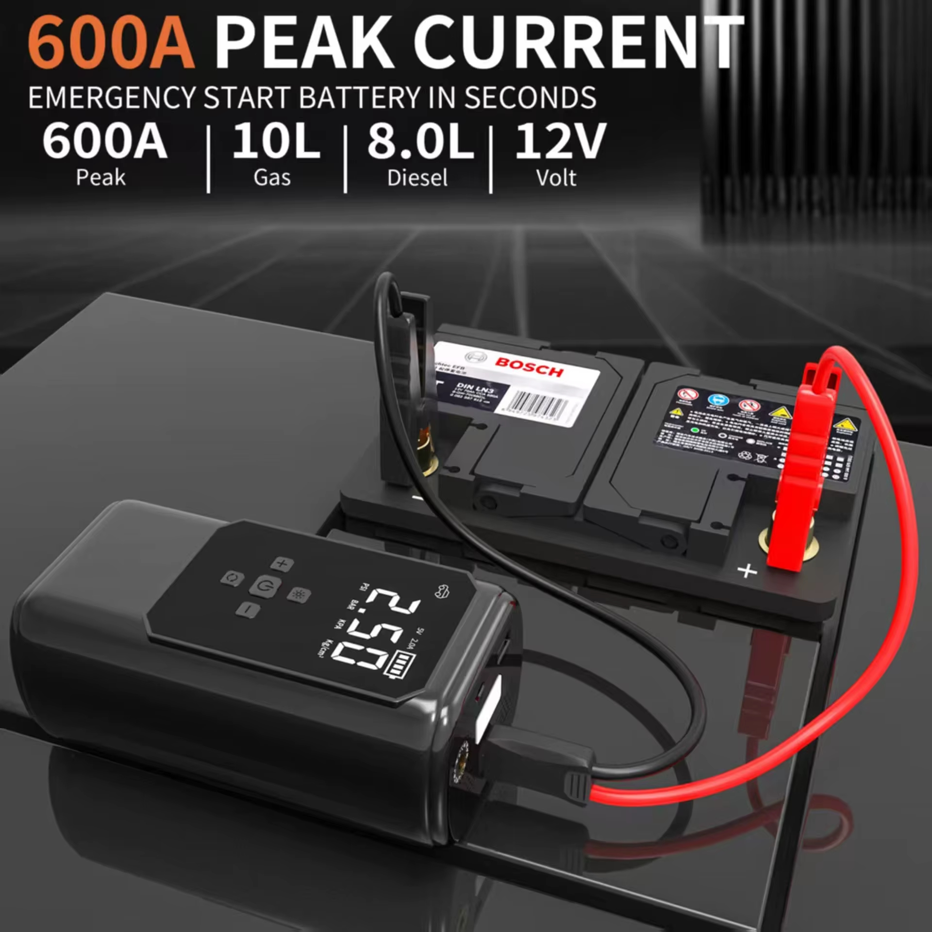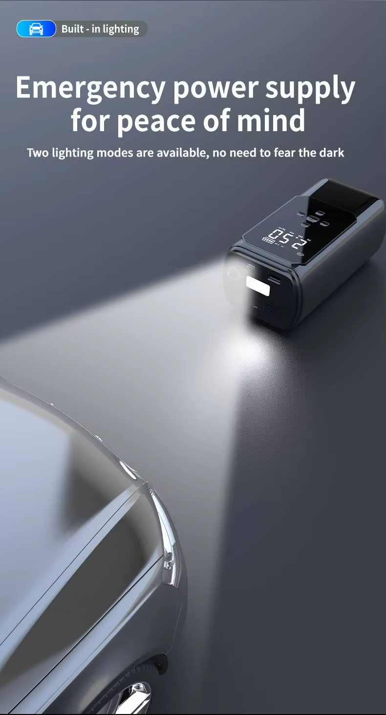 2025 Model High-Capacity 12V ABS Battery Jumper Pack New Car Emergency Jump Starter with Built-in Air Compressor