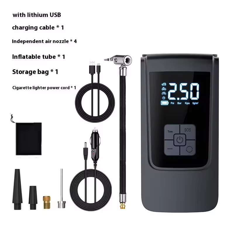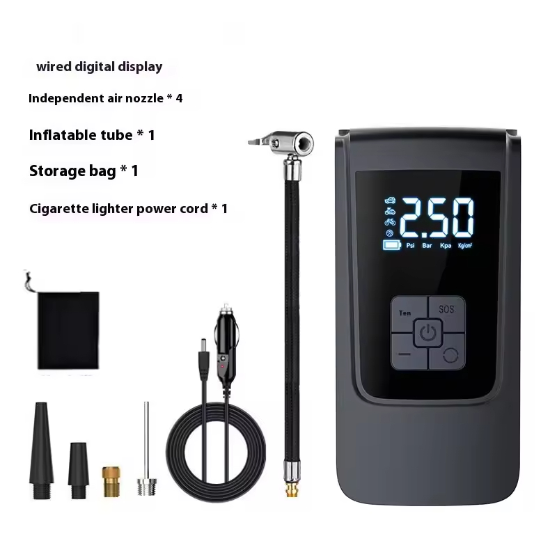 Portable Electric Tire Inflator Pump for Cars and Motorcycles ABS Digital Wireless Model Wired No Power Bank Required