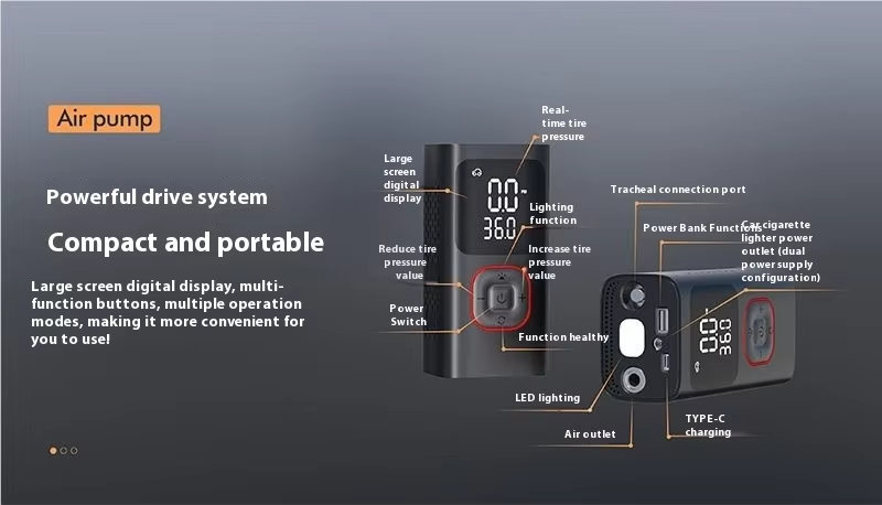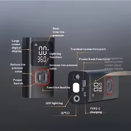 Portable Wireless Intelligent Digital Display Tire Inflator Pump Multi-Function LED Emergency Light Car Inflator Pump