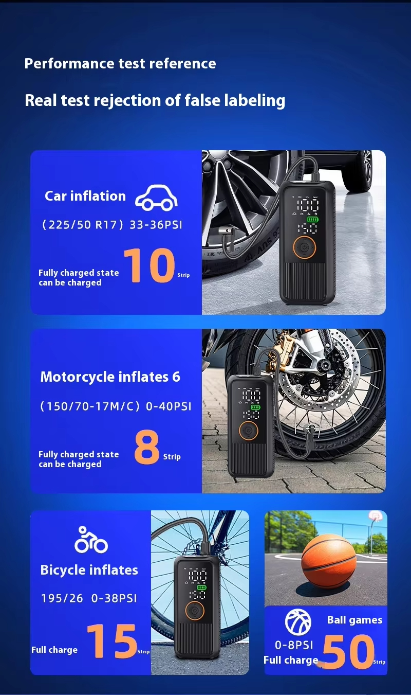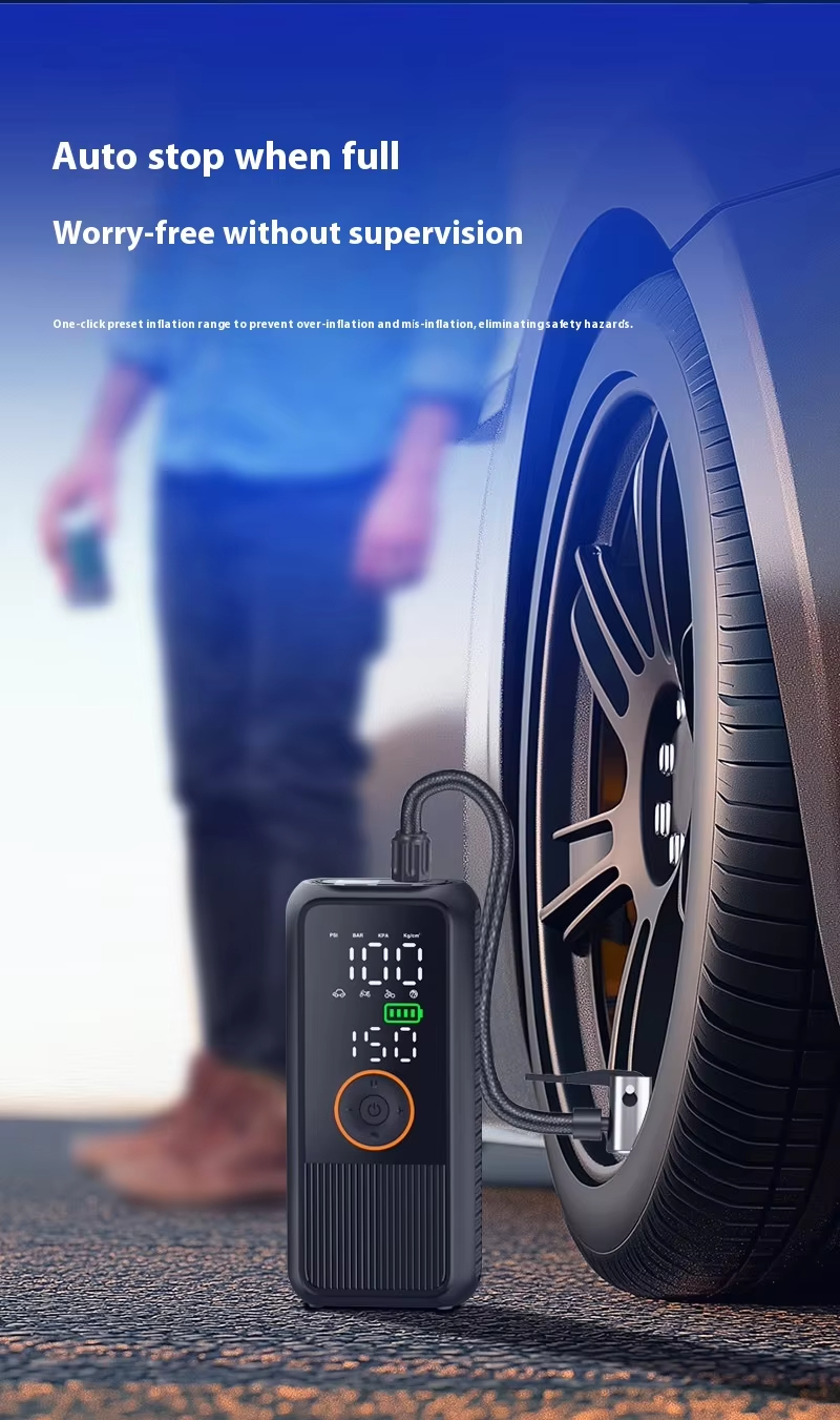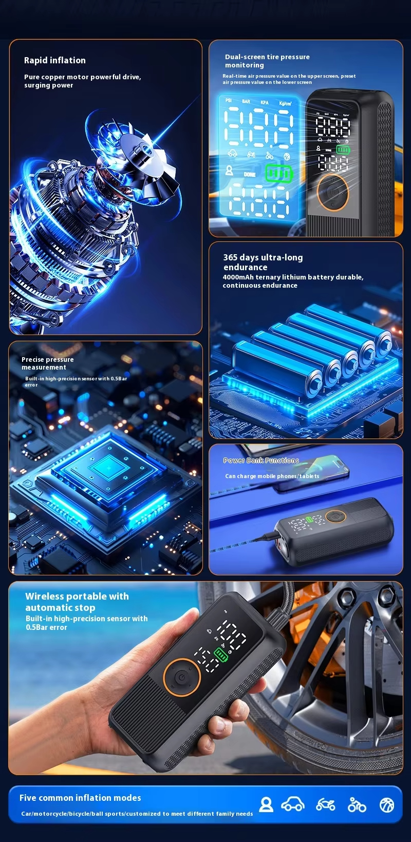 Portable Mini Electric Tire Inflator with Digital Display Wireless Fast Charging for Car and Motorcycle Tyre Inflation