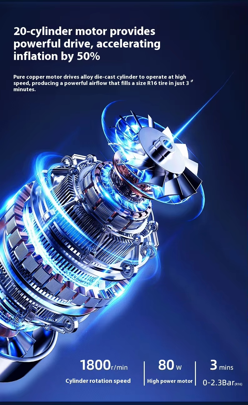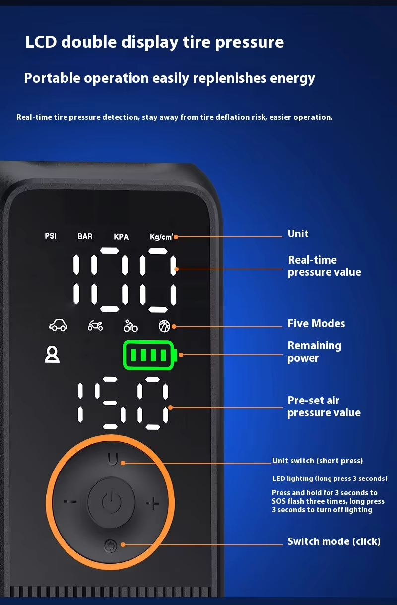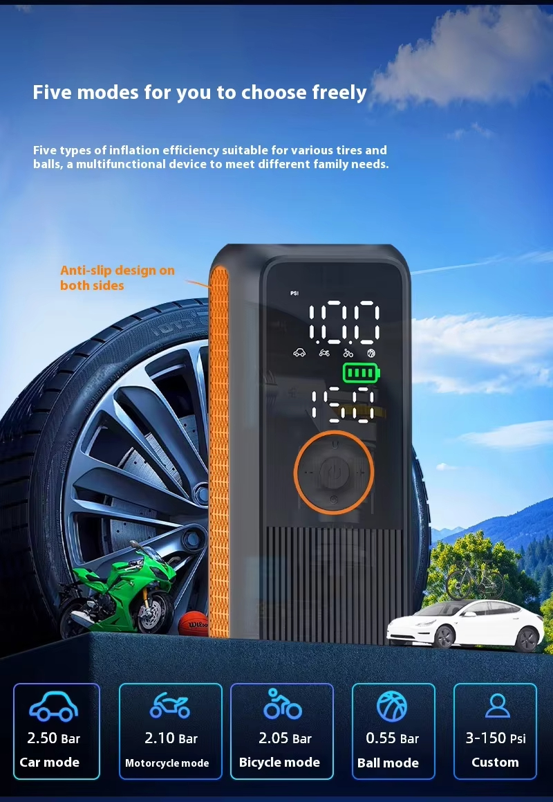 Portable Mini Electric Tire Inflator with Digital Display Wireless Fast Charging for Car and Motorcycle Tyre Inflation