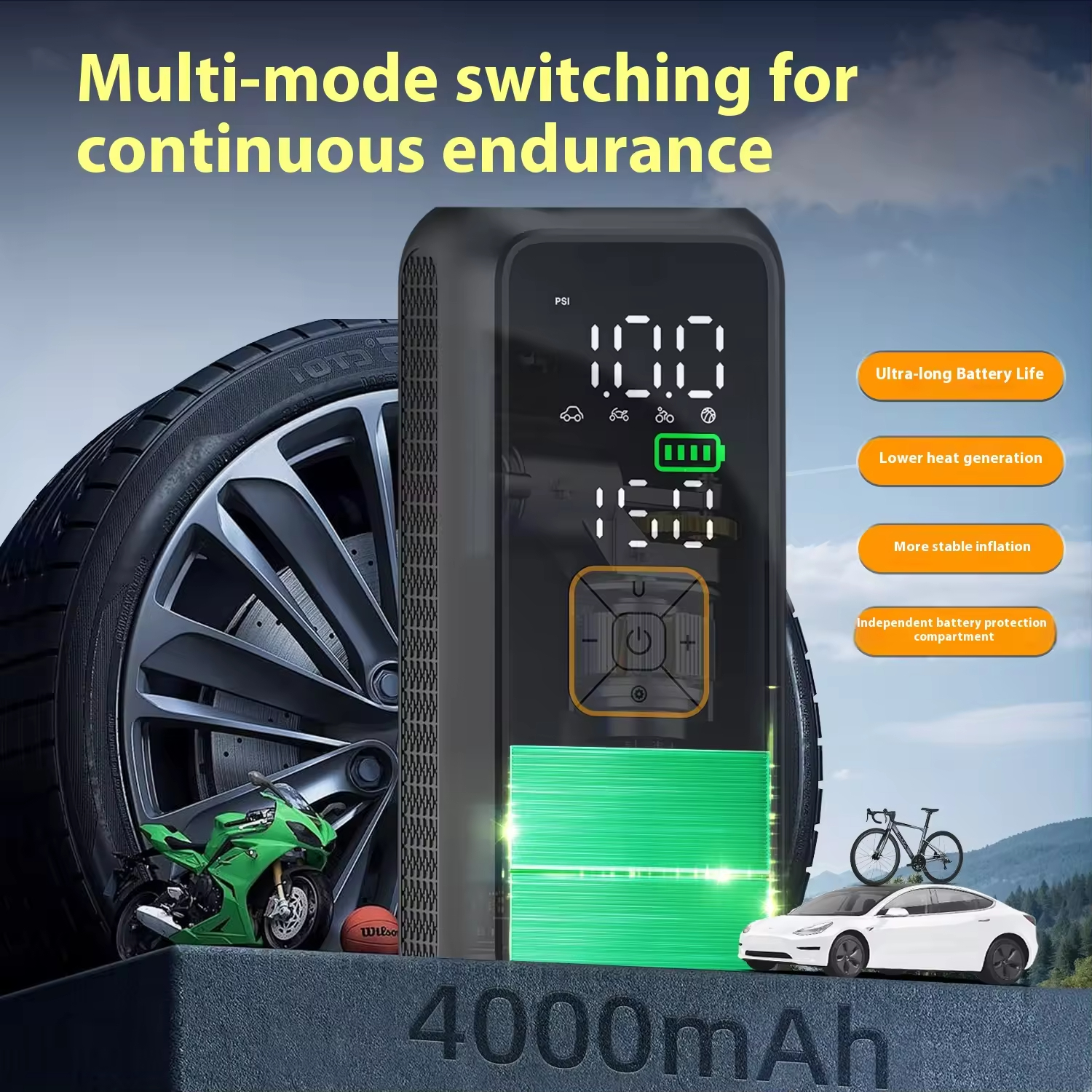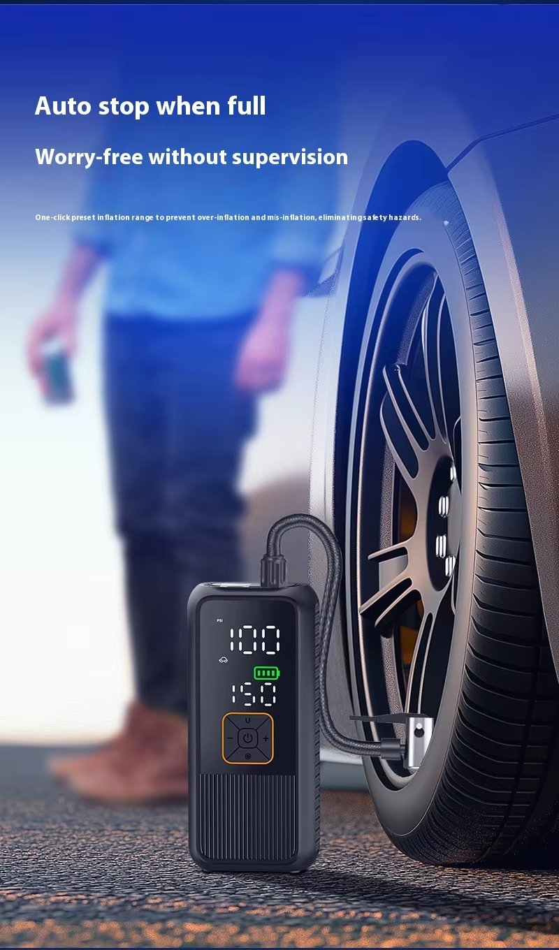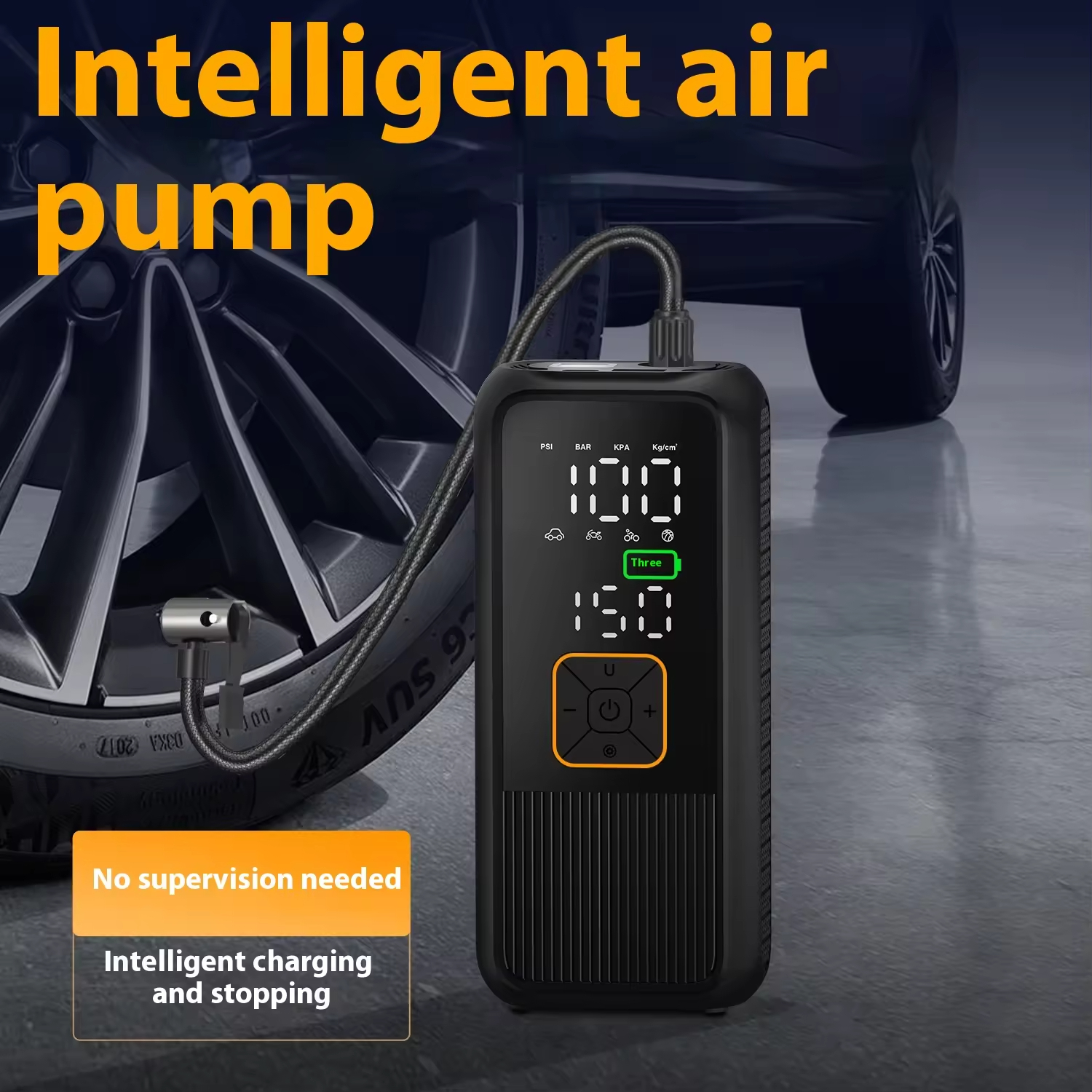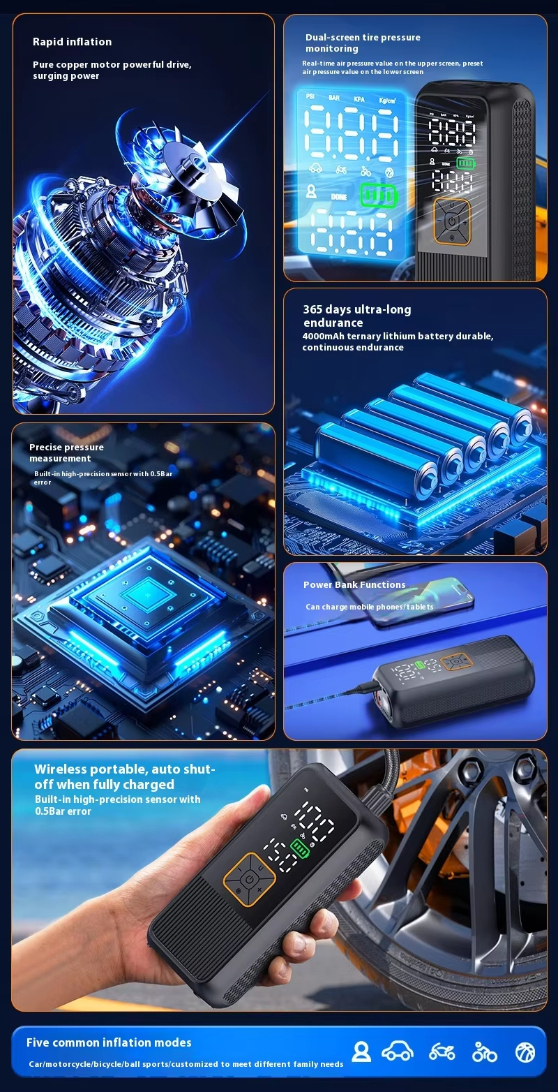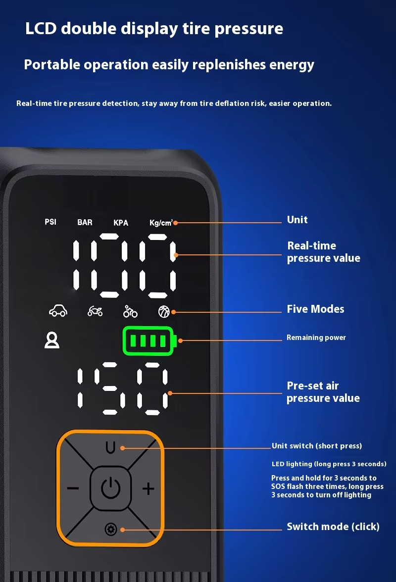Dual Screen Digital Display Wireless Tire Inflator Pump LED Emergency Lighting USB Charging Cable Battery Operated SOS Function