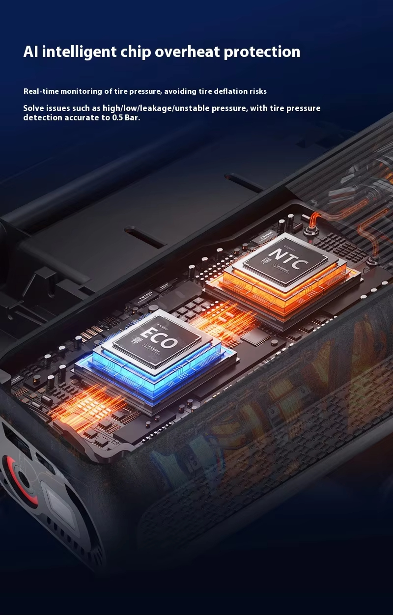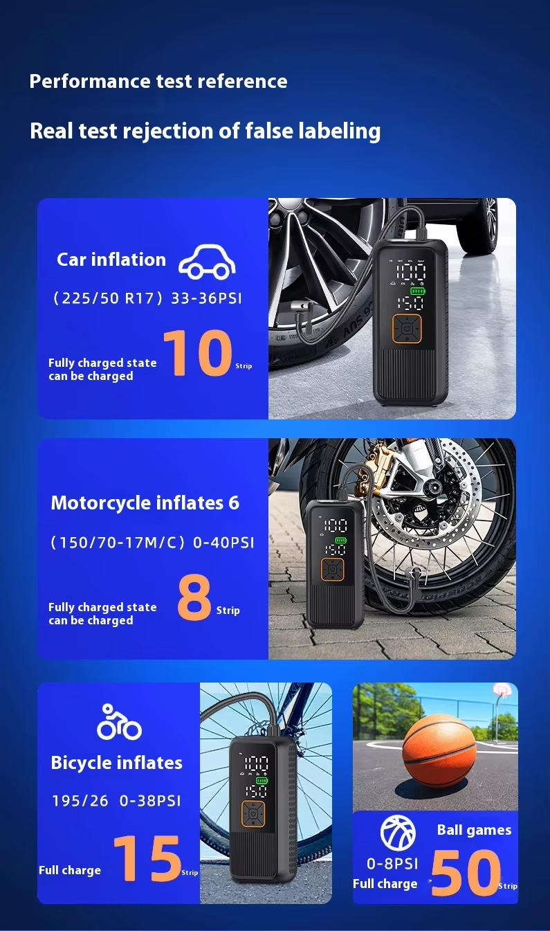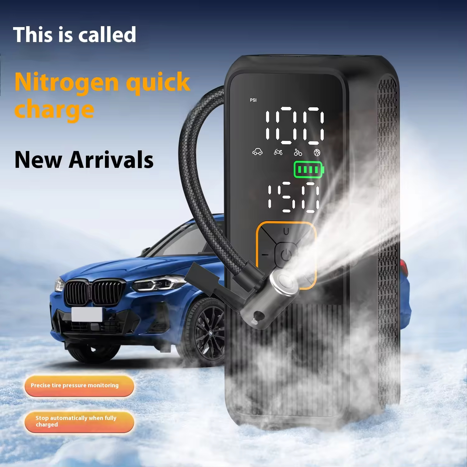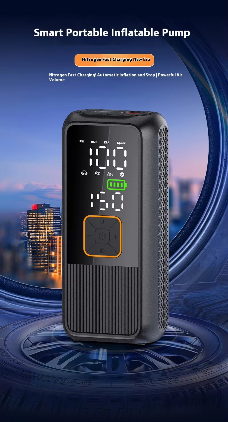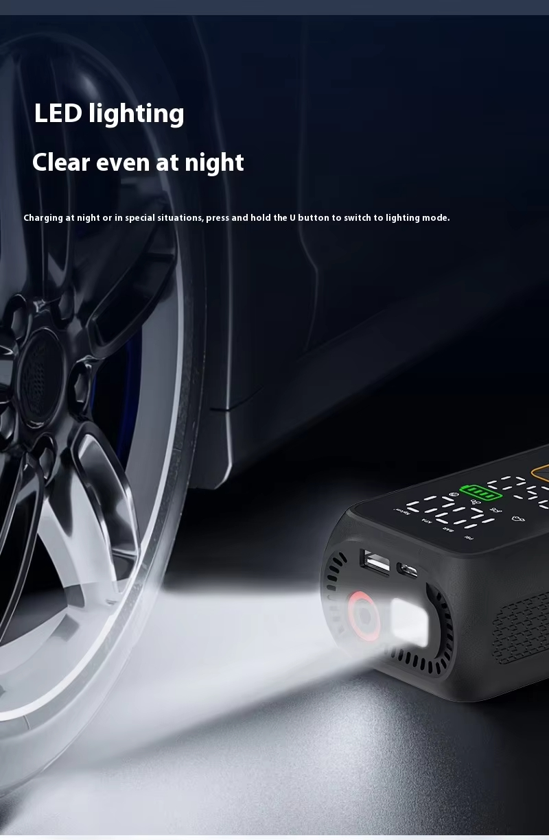 Dual Screen Digital Display Wireless Tire Inflator Pump LED Emergency Lighting USB Charging Cable Battery Operated SOS Function