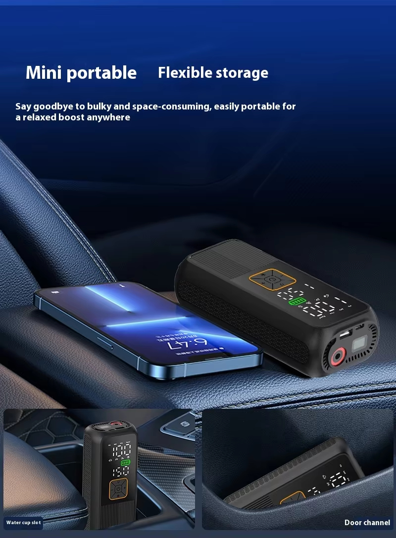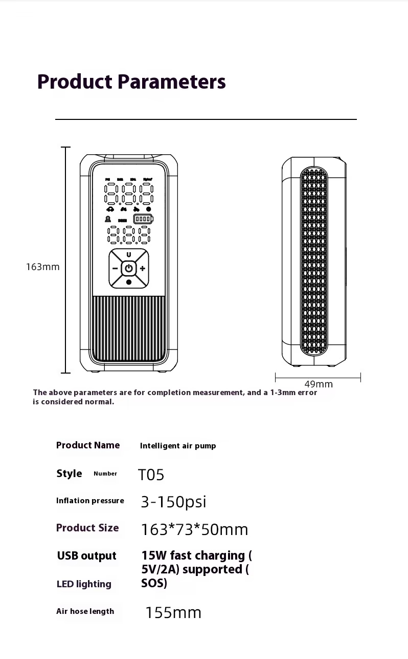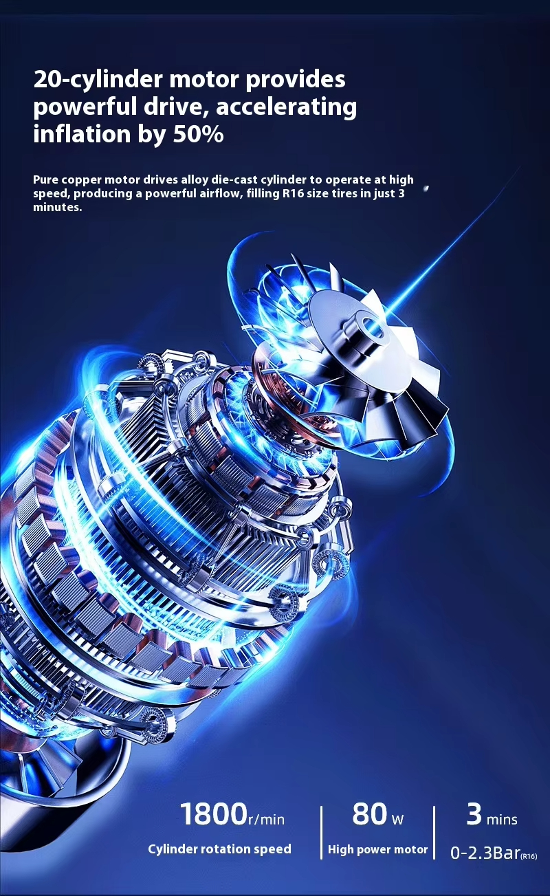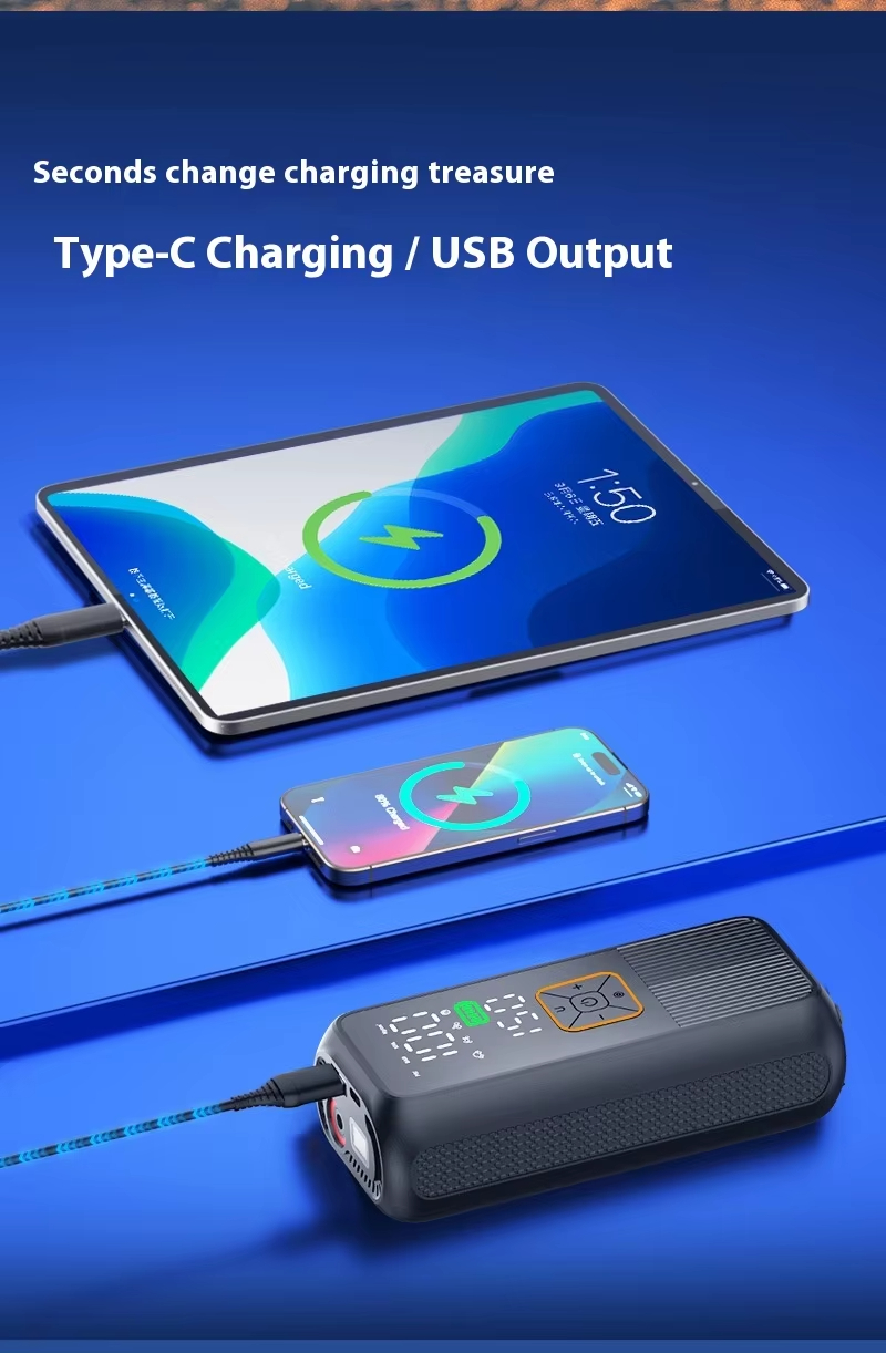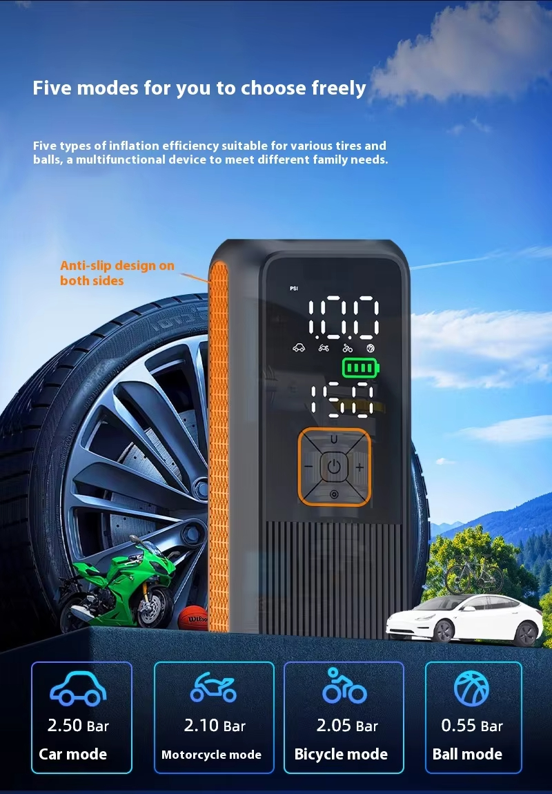 Dual Screen Digital Display Wireless Tire Inflator Pump LED Emergency Lighting USB Charging Cable Battery Operated SOS Function