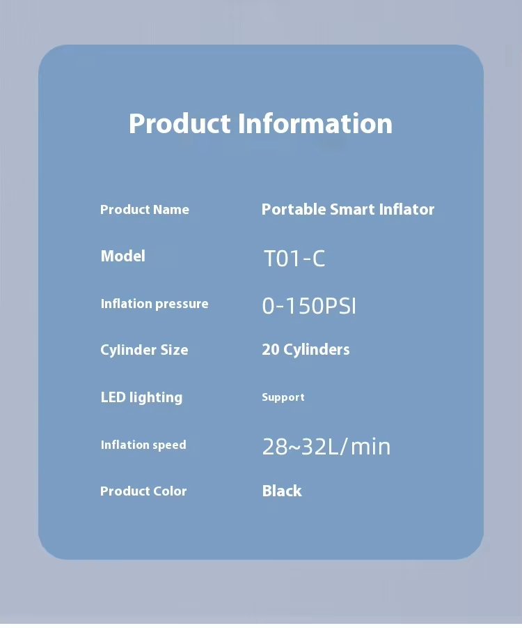 Prev: USB Type-C LED Emergency Light Tire Inflator Pump 150PSI 80W High Power Smart Fill-Stop Digital Display Inflator Pump