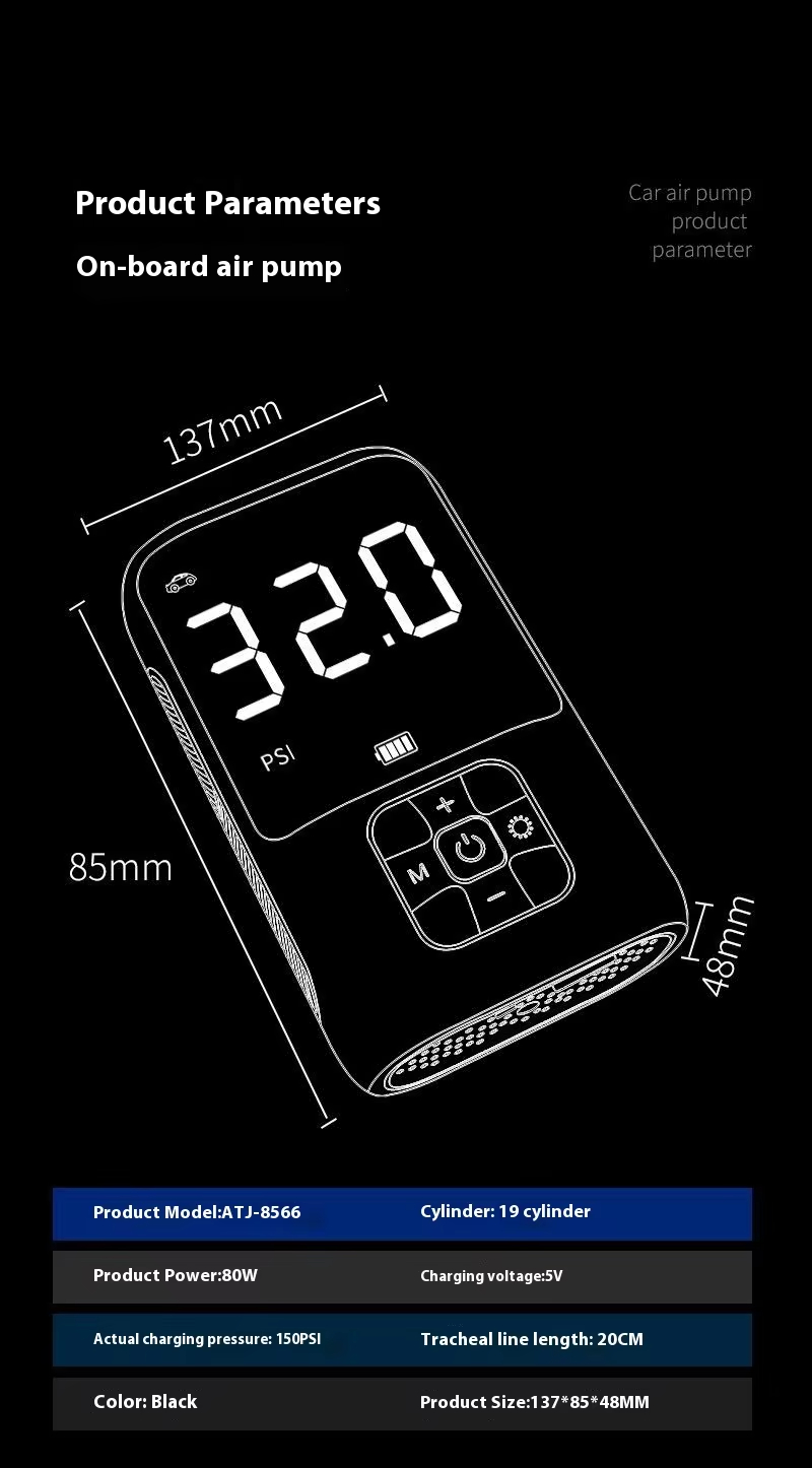 Prev: Portable 12V DC Plug-In Electric Car Air Pump 2000mAh Digital Tire Inflator with Tire Pressure Monitor Box Packing