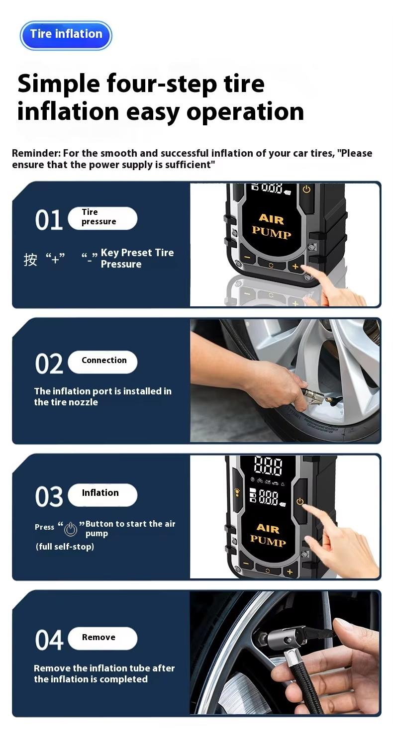 Prev: Dual Power Supply Wireless Inflator Pump Power Supply Function 3-in-1 Tire Inflator Pump