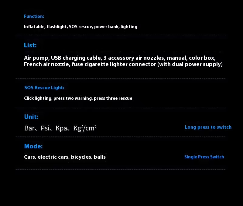 Prev: WirelessTireInflator Pump Multi-mode Dual Screen Digital Display Portable Car Inflator Pump With Power Function Two-way Charging